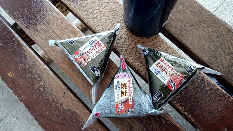 おにぎり3個、約300円を買ってベンチに座ってお昼ご飯にしました。