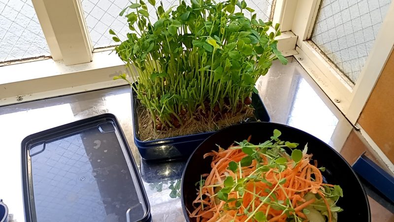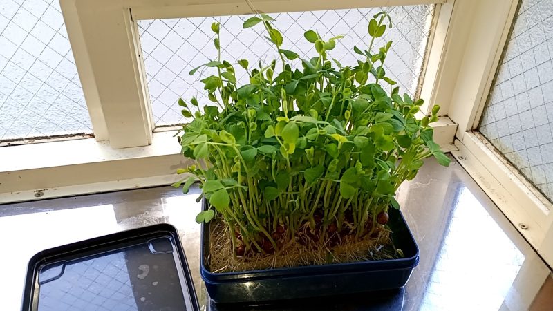 豆苗は元気に育っており収穫できるようになりました。
