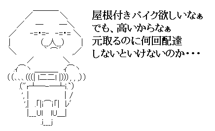 俺みたいにバイクで走るの好きで、元からバイク乗ってて、配送してんなら(俺はやってないが)いいが、配送のためにバイク買っても到底元取れない