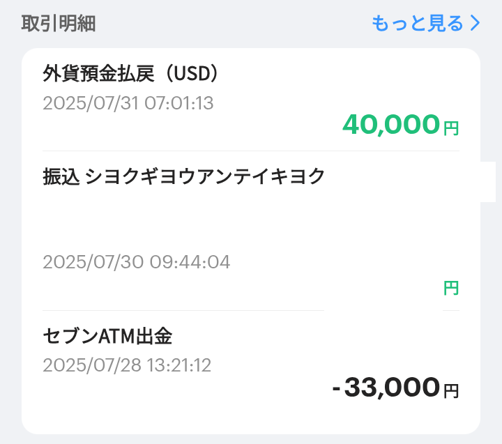 あとは今は円安なので隠し財産のドル預金4万円分を円に換金しておきました。