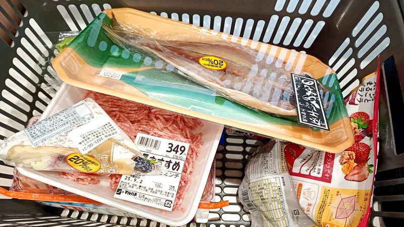 2割引きのあじのひらきやスイーツなど2000円程のお買い物でした。