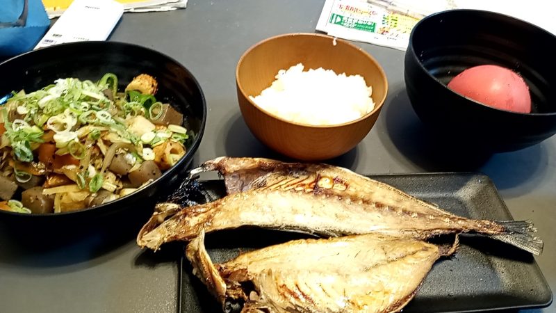 昼間に買ってきた2割引き300円のアジとこんにゃくの野菜炒めを食べました。
