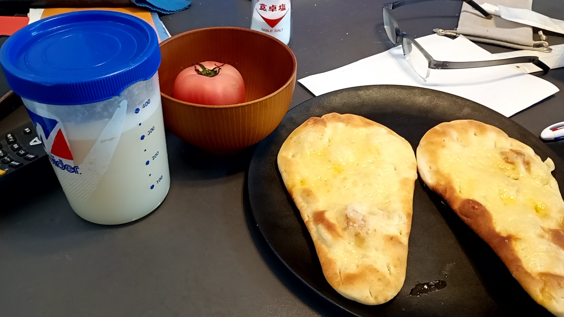 1枚50円ぐらいのナンにバターとチーズをのせてトーストで焼きました!