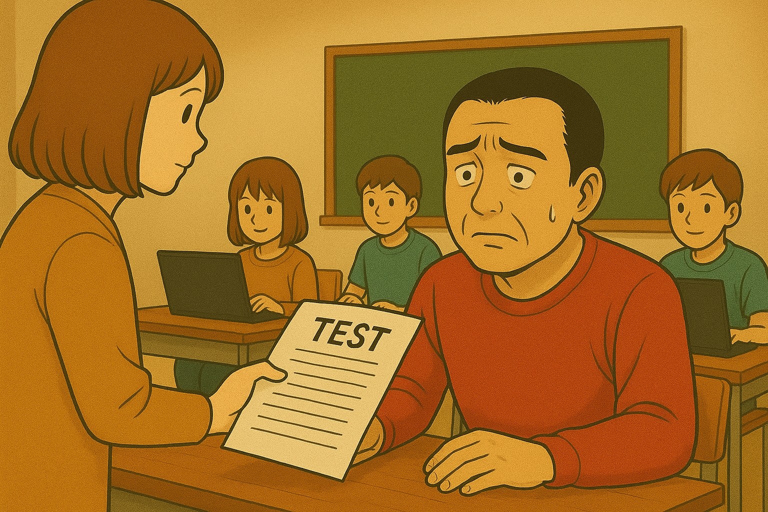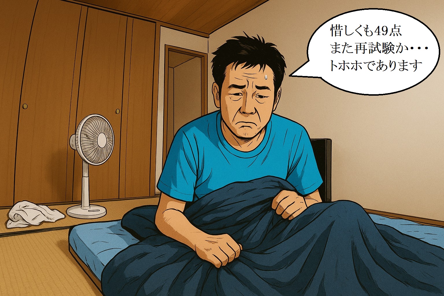 若者みんな合格で、一人だけ一回り年上のおっさんが再試験。しかも問題同じの再試験の合格で祝賀会て…