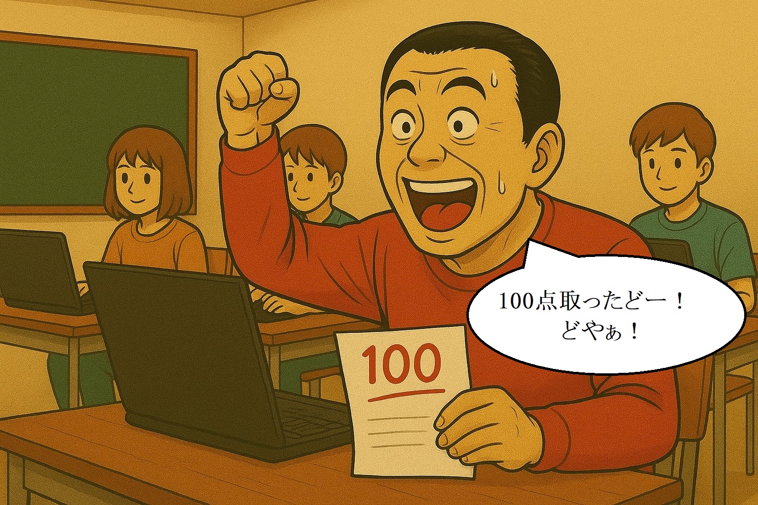 出る問題が分かったテストで100点取って喜ぶこどおじ、かわいい
