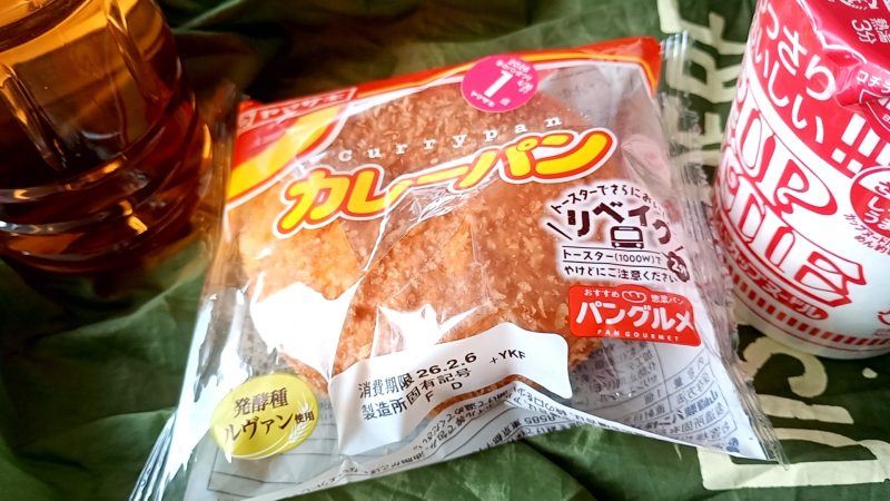 >今日はカレーパン100円とカップ麺100円を家から持参しました。