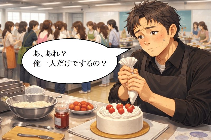 僕は甘いものが好きなのでケーキ作りを選びましたが、一人ぼっちの作業となりました。