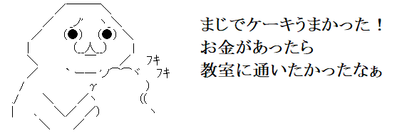 ケーキを自分で作れれば経済的!とか思いましたが、料理教室の費用数万~数十万円払うならその分ケーキや美味しい物をいっぱい食べれるじゃん!と思いました。