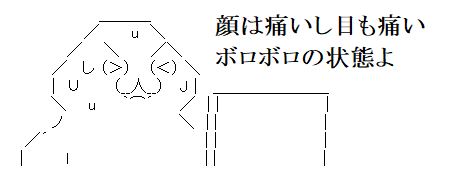 これで会社へ行くとホラーなので、血の涙を拭いてから会社へいくのでした。