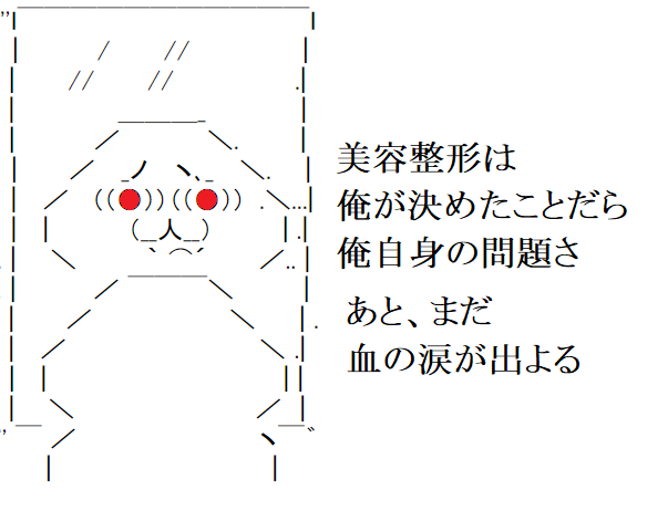 僕にお金があったら更に美容整形をすればいいかもしれませんが、お金がないのでこれで辞めます。